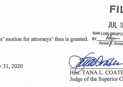Today, the San Luis Obispo County Superior Court issued a Temporary Restraining Order prohibiting the