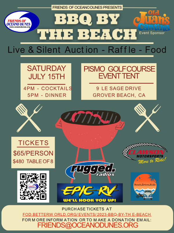 Join us July 15th 2023 for the Friends of Oceano Dunes BBQ by the Beach Event